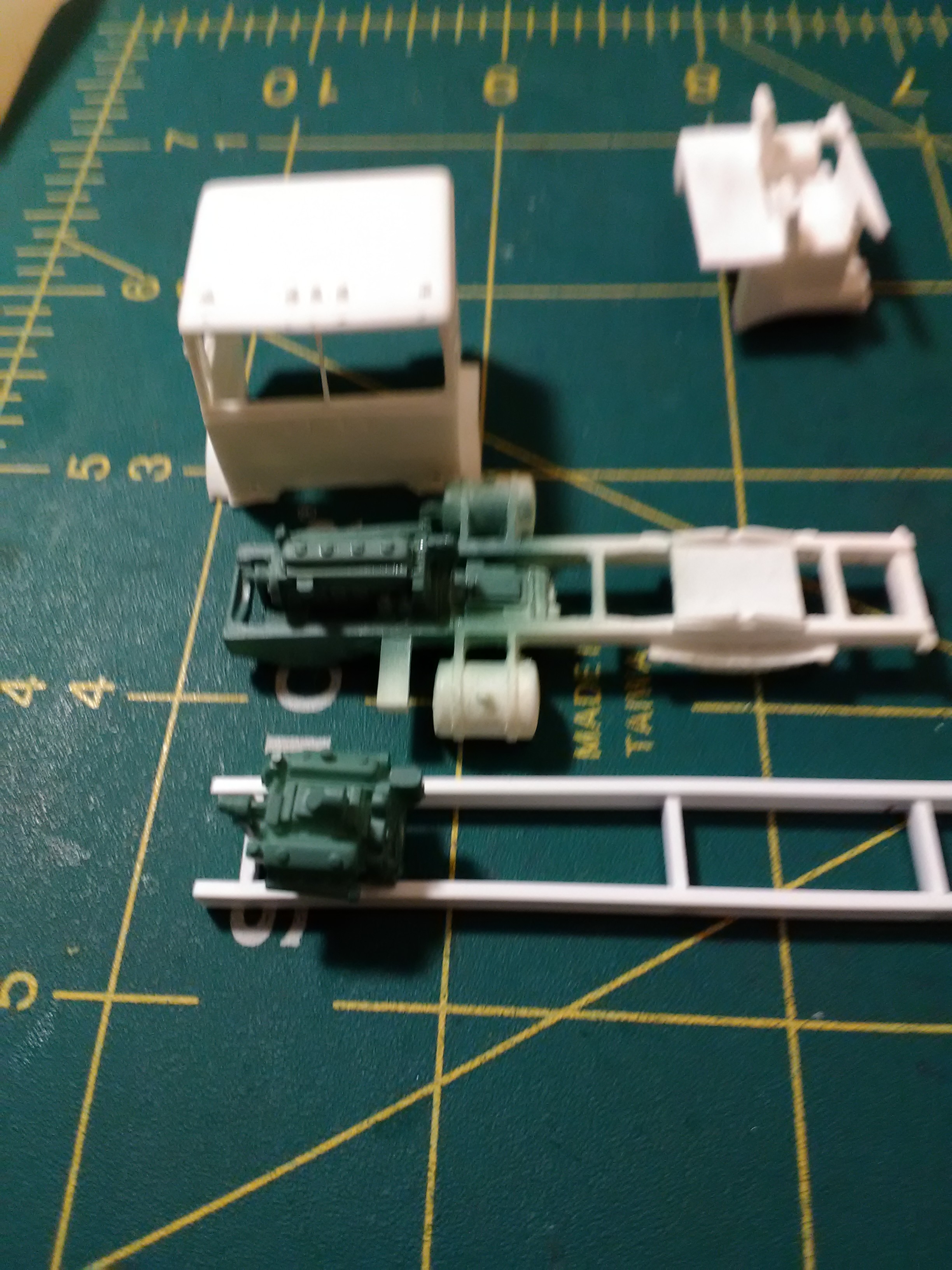 Vince P Posted May 19, 2019 (edited) Phone blipped & lost a lot of the early build pics on this one. Started with an athearn ho 1/87 scale Freightshaker coe. Opened the drivers door which will be hinged with. 0.014 tubing with 0.007 wire to mount it to the body or vice versa. Alloy forms roof airfoil, many Plano PE parts going into this mini beast, scratched frame, scratched axles and suspension, Ratcliffe resin Driptroit 8V71 with Fuller lone ranger transmission hehehehehe, and a whole bunch of other scratched and PE parts. And Napa provided genuine Driptroit alpine green Edited May 19, 2019 by Vince P Share this post Link to post Share on other sites