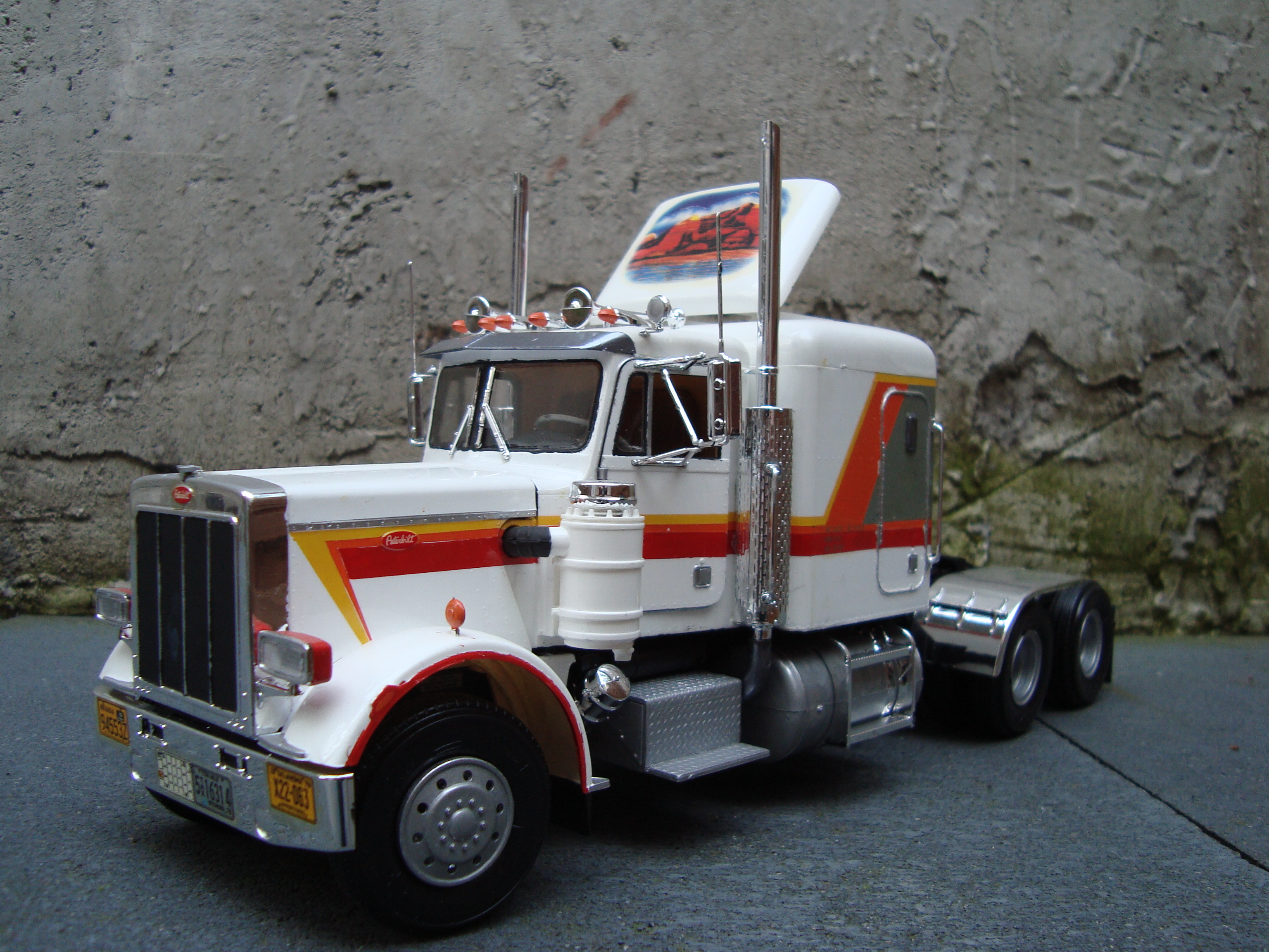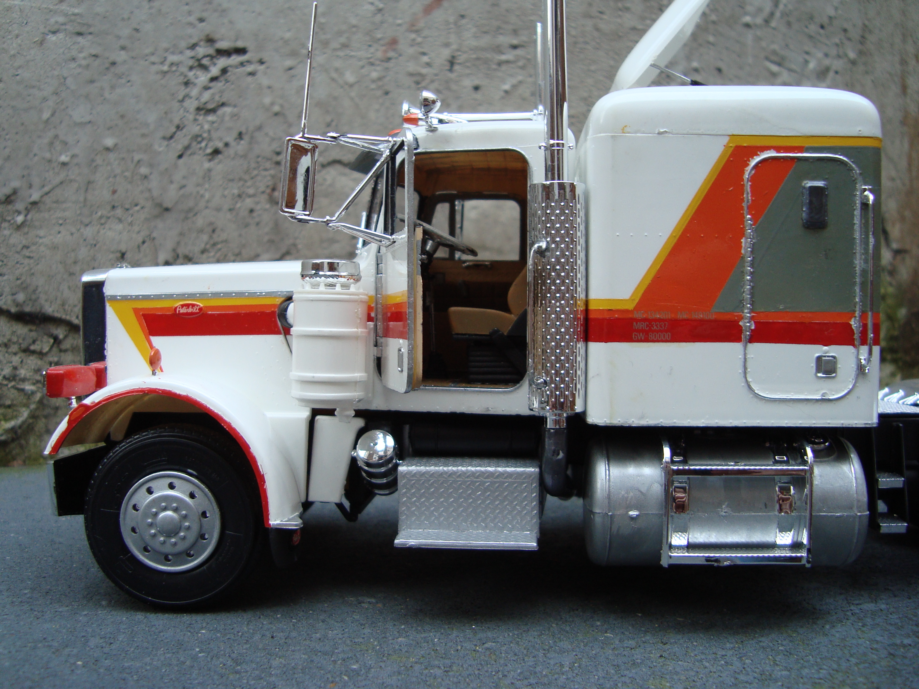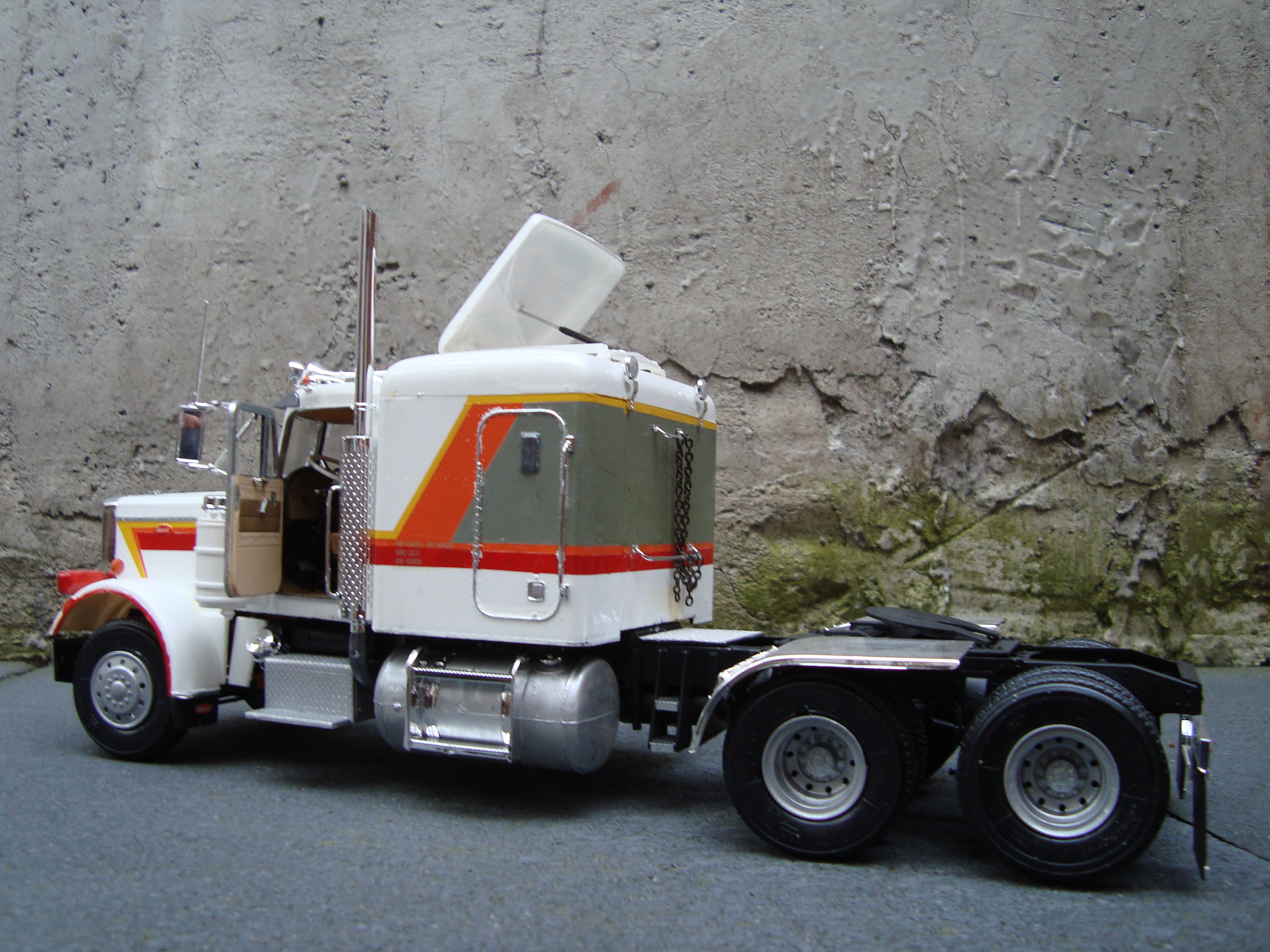 Joris Posted September 15, 2015 (edited) Just another Peterbilt in my early building years. Not really an idea, just building it. The striping I did myself. For the rest, nothing fancy; I do think there's this 70-ies look about it. A "Catercummins" under the hood... Edited September 15, 2015 by Joris Share this post Link to post Share on other sites