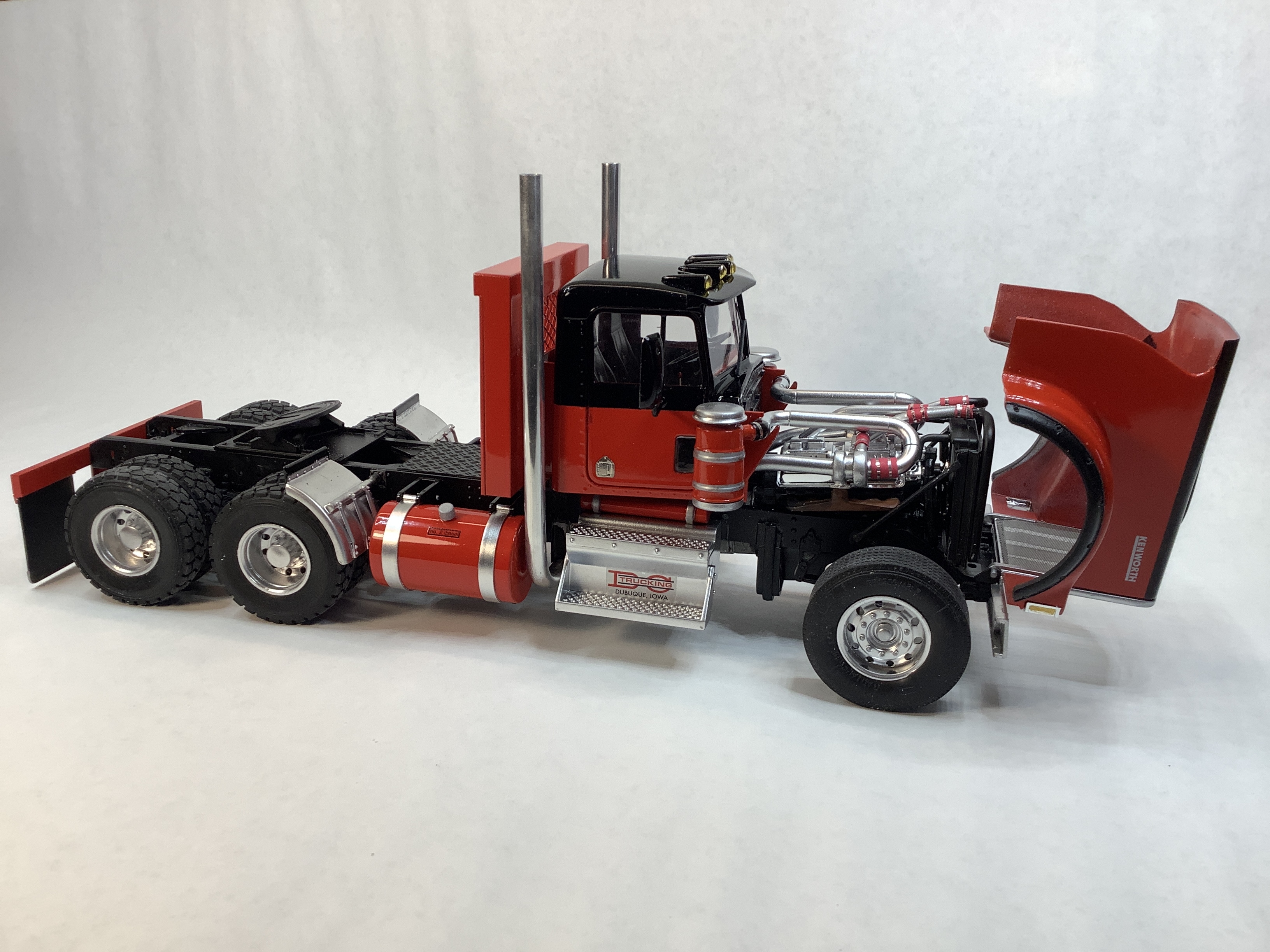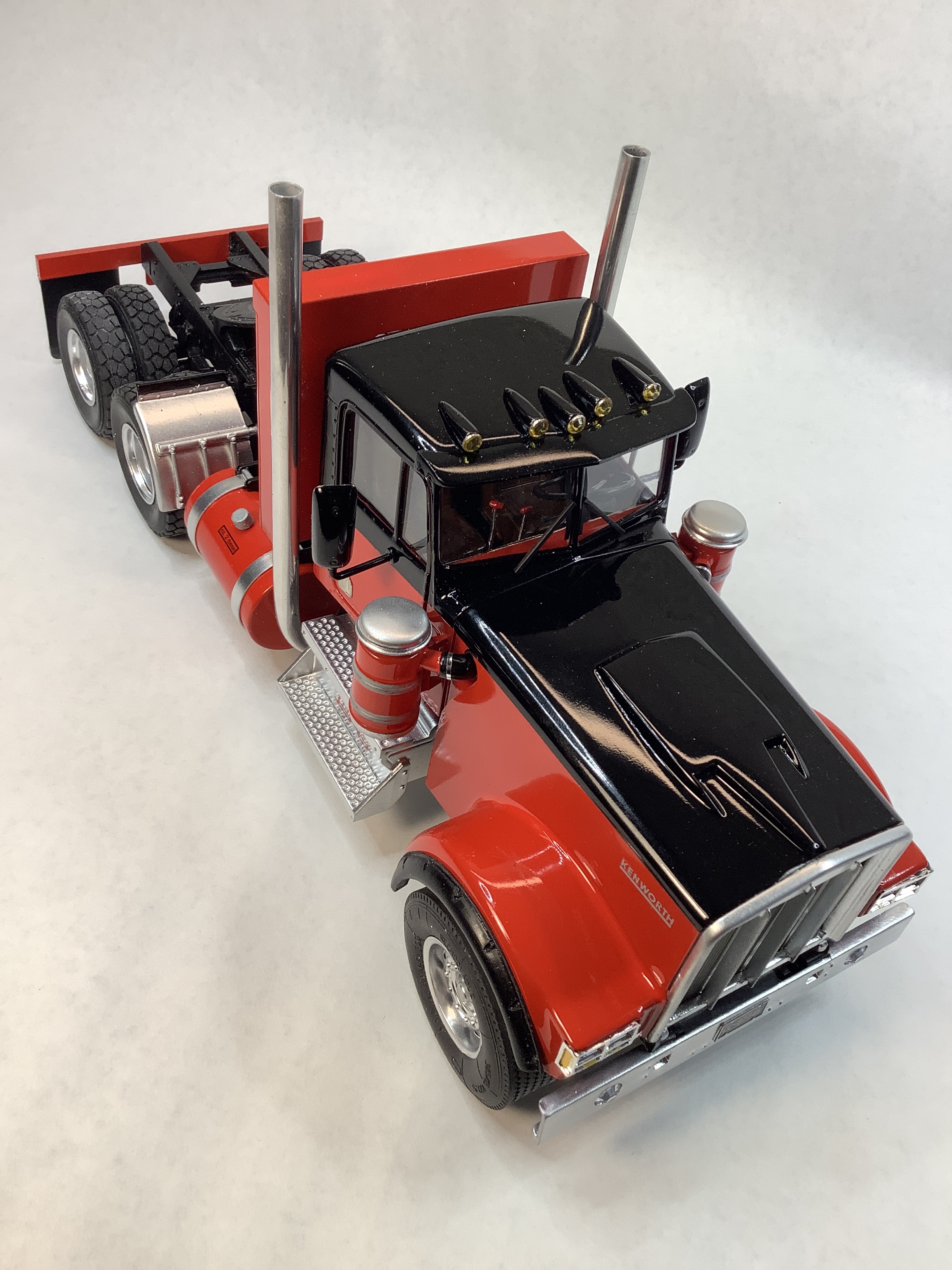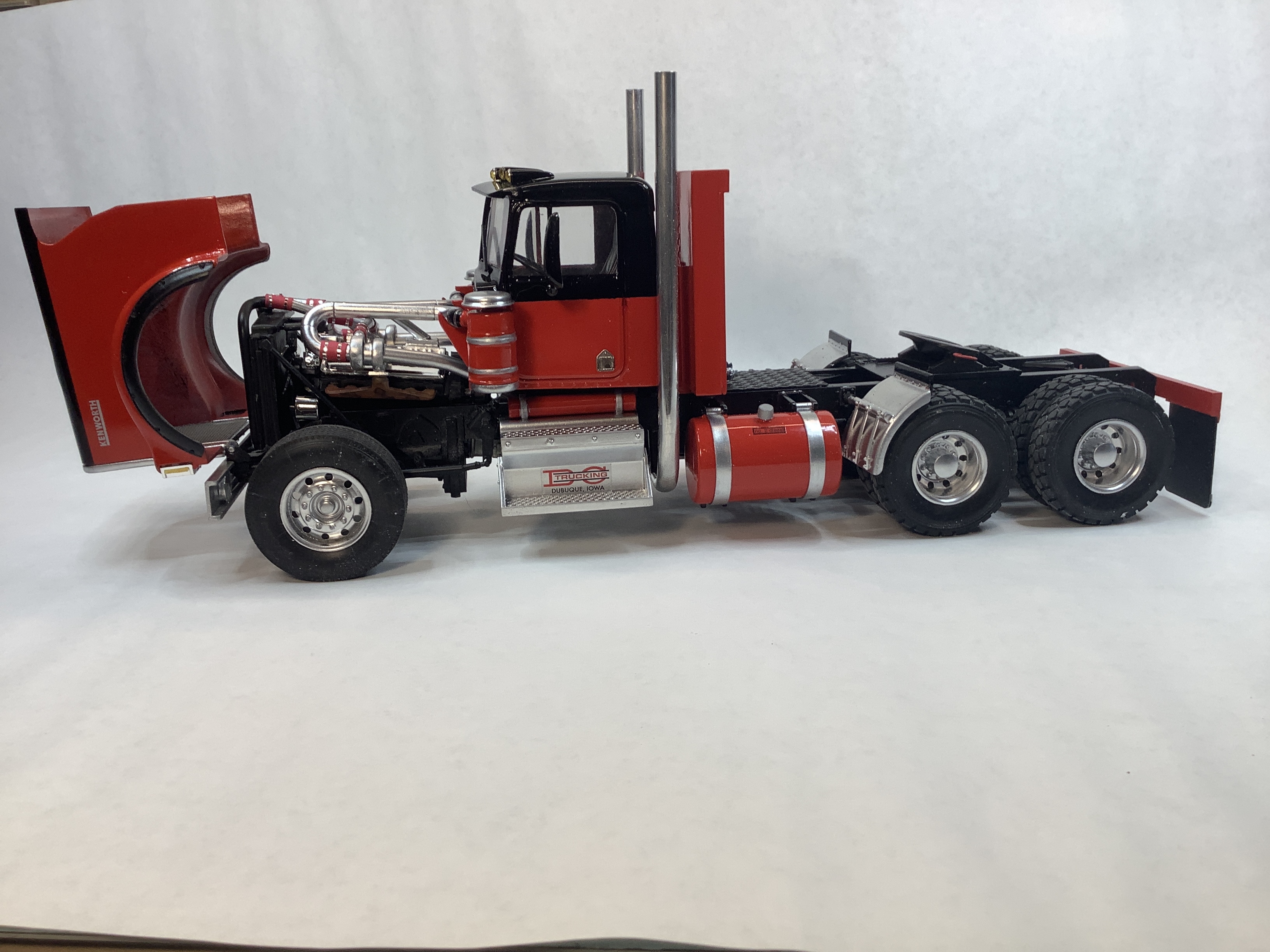 Gary Chase Posted February 2 This build was wrapped up a few weeks ago. It is a kit bash with the Watkins 925 and the Malone race truck. I used the long hood (15mm longer than stock) and the twin blower/ twin turbo V12 engine. The turbos were exchanged for larger turbos and re-plumbed for an intercooler. Frame stretch, hand built aluminum exhaust, custom fuel tanks, fabricated headache rack, grill was cut out and replaced with a screen, custom interior, aftermarket tires, and cast mirrors. 2 Share this post Link to post Share on other sites