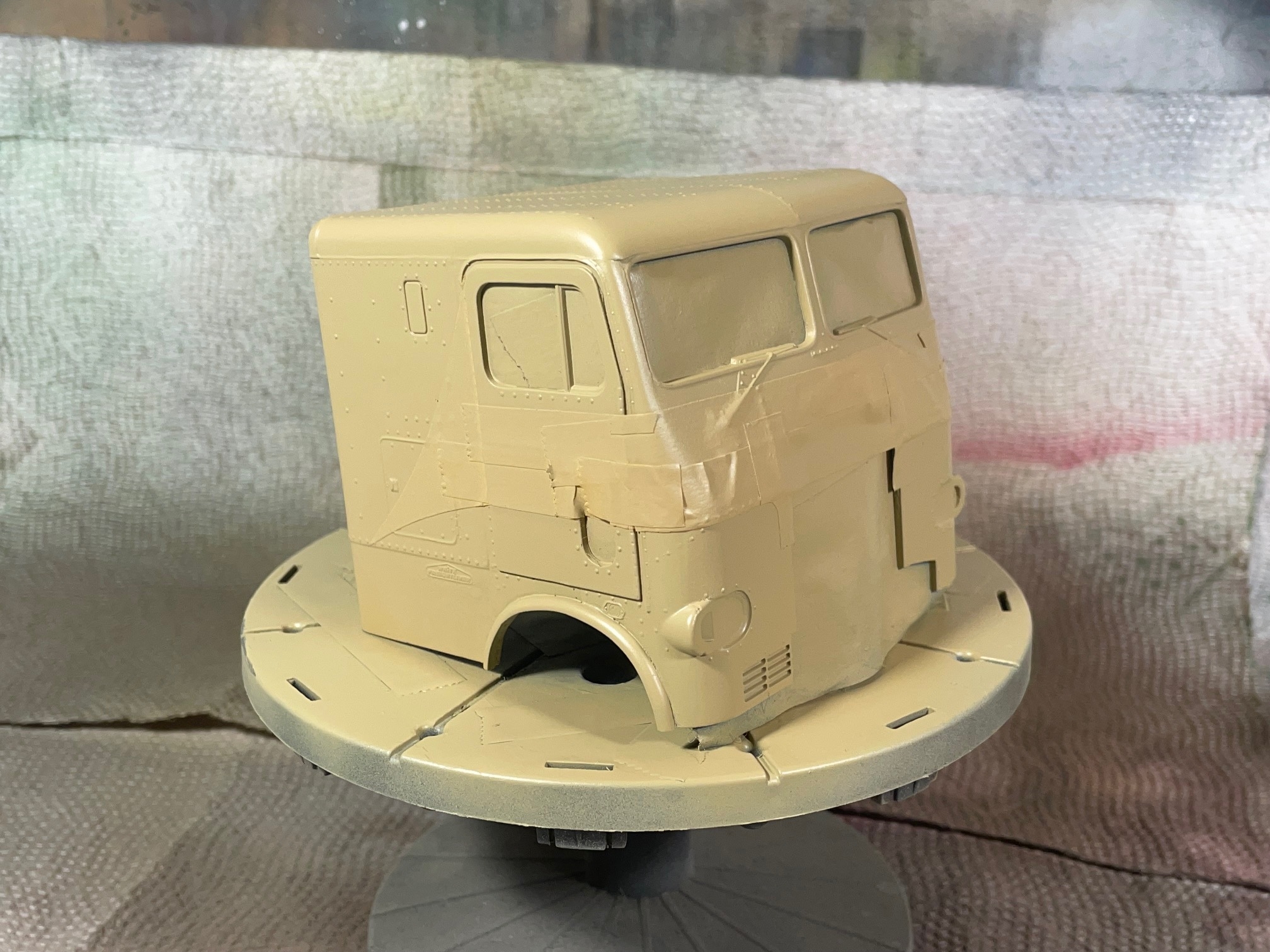 Adding grime to the cab using heavily diluted paint with a spray gun. My favorite look is "in use" and am trying to learn the art of "less is more".