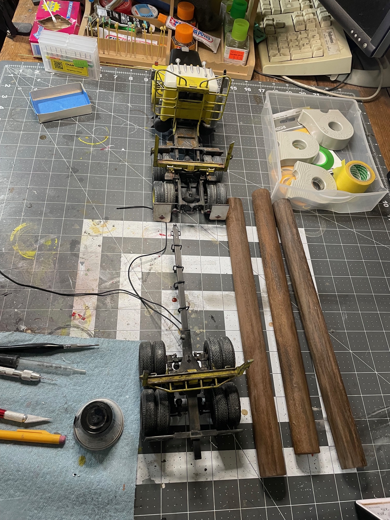 Maybe too pretty. A perfect yellow rack and bunk doesn't seem possible (in my imagination) for a logging truck.