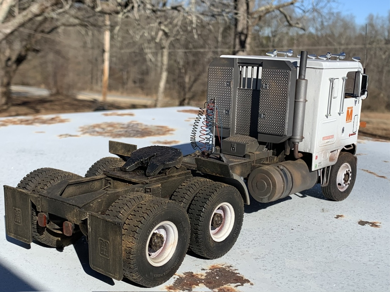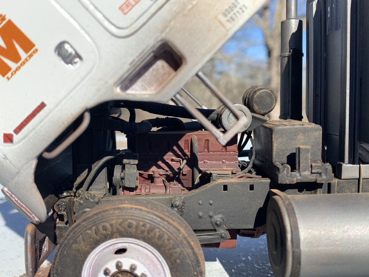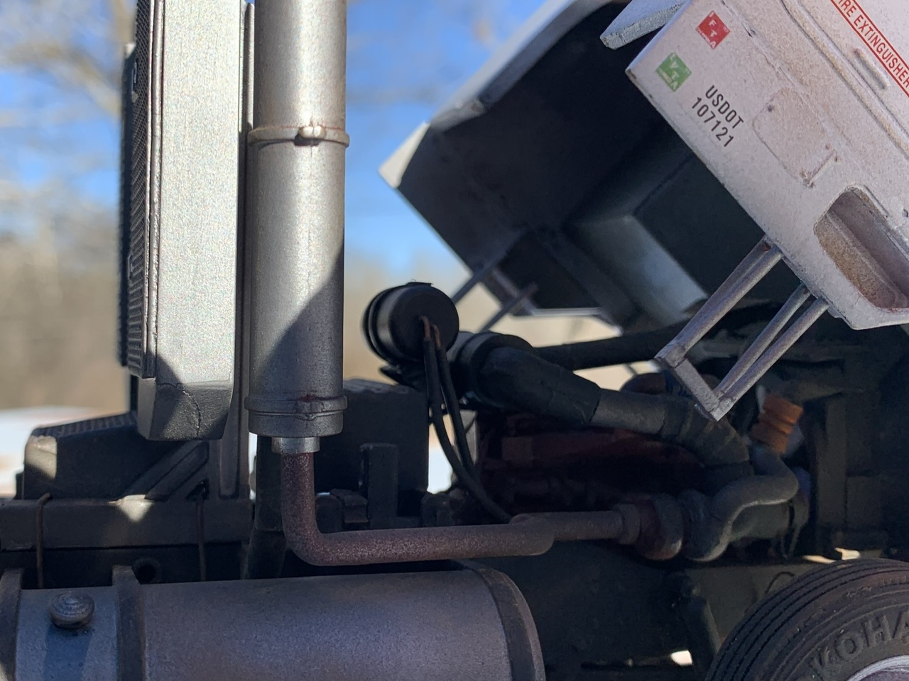 On 1/17/2024 at 9:28 PM, vincen47 said:Excellent all around! I love your choice in wheels, tires, and engine. Everything is spot on, looks exactly like a typical fleet truck of that era. Your weathering is fantastic, too. Just the right amount to look realistically used, including the diesel spill down the fuel tanks and the grease on the fifth wheel. Not to mention, you don’t see many models of a 9600, so that’s unique. You’ve even got a bag of Doritos in the cab!