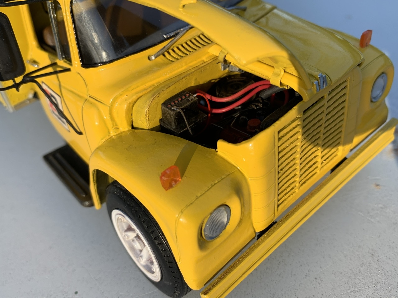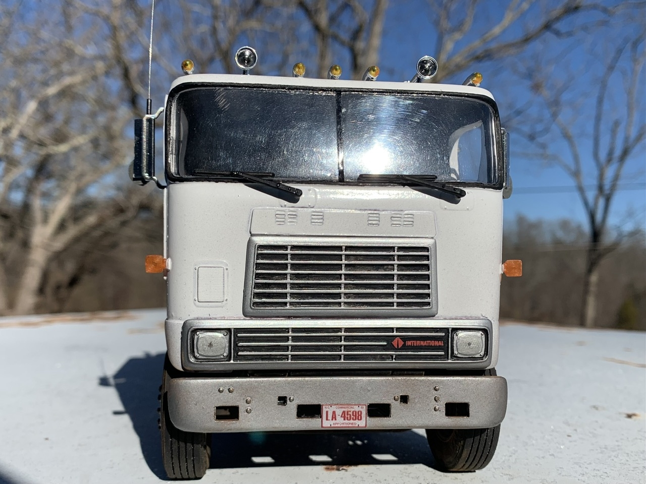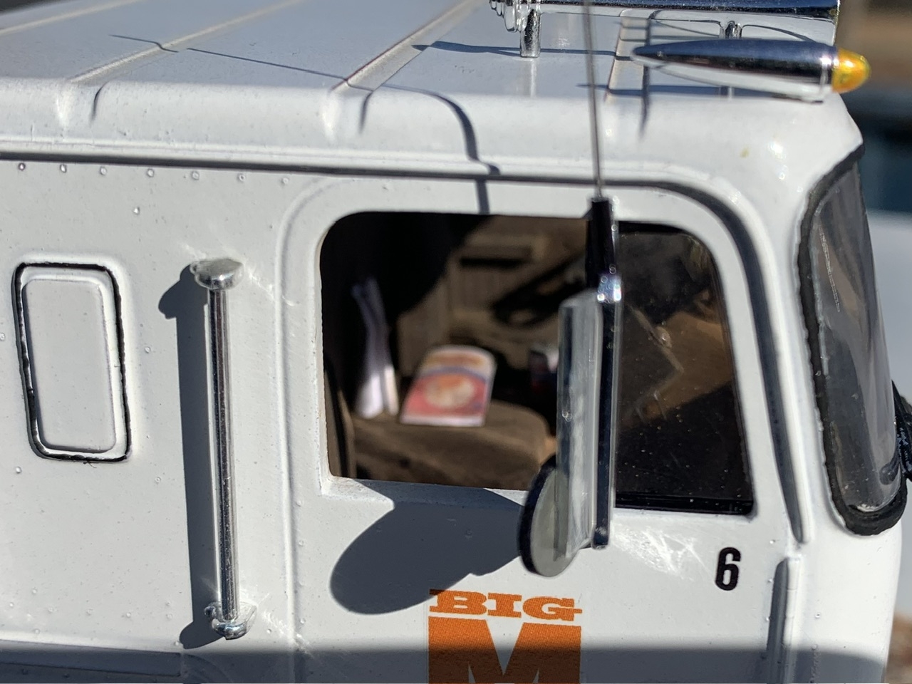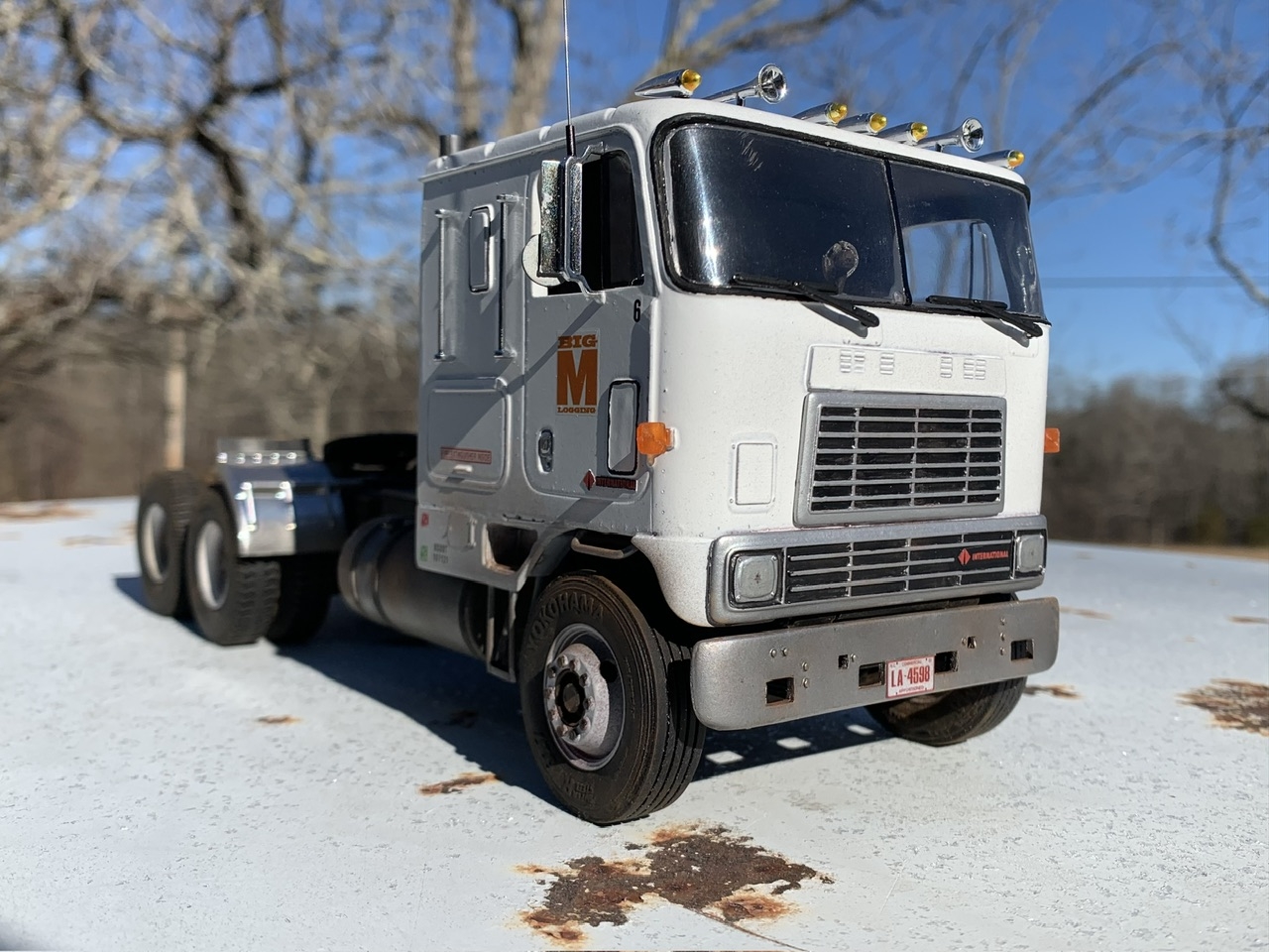 On 1/17/2024 at 9:28 PM, vincen47 said:Excellent all around! I love your choice in wheels, tires, and engine. Everything is spot on, looks exactly like a typical fleet truck of that era. Your weathering is fantastic, too. Just the right amount to look realistically used, including the diesel spill down the fuel tanks and the grease on the fifth wheel. Not to mention, you don’t see many models of a 9600, so that’s unique. You’ve even got a bag of Doritos in the cab!